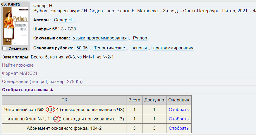 После того, как вы отобрали книги, в разделе «Отобранные книги» необходимо нажать кнопку «Заказать». При заказе литературы будьте внимательны при выборе пункта книговыдачи (ПК) в котором вы планируете забирать книги. Первые цифры — номер кабинета, через дефис — учебный корпус.