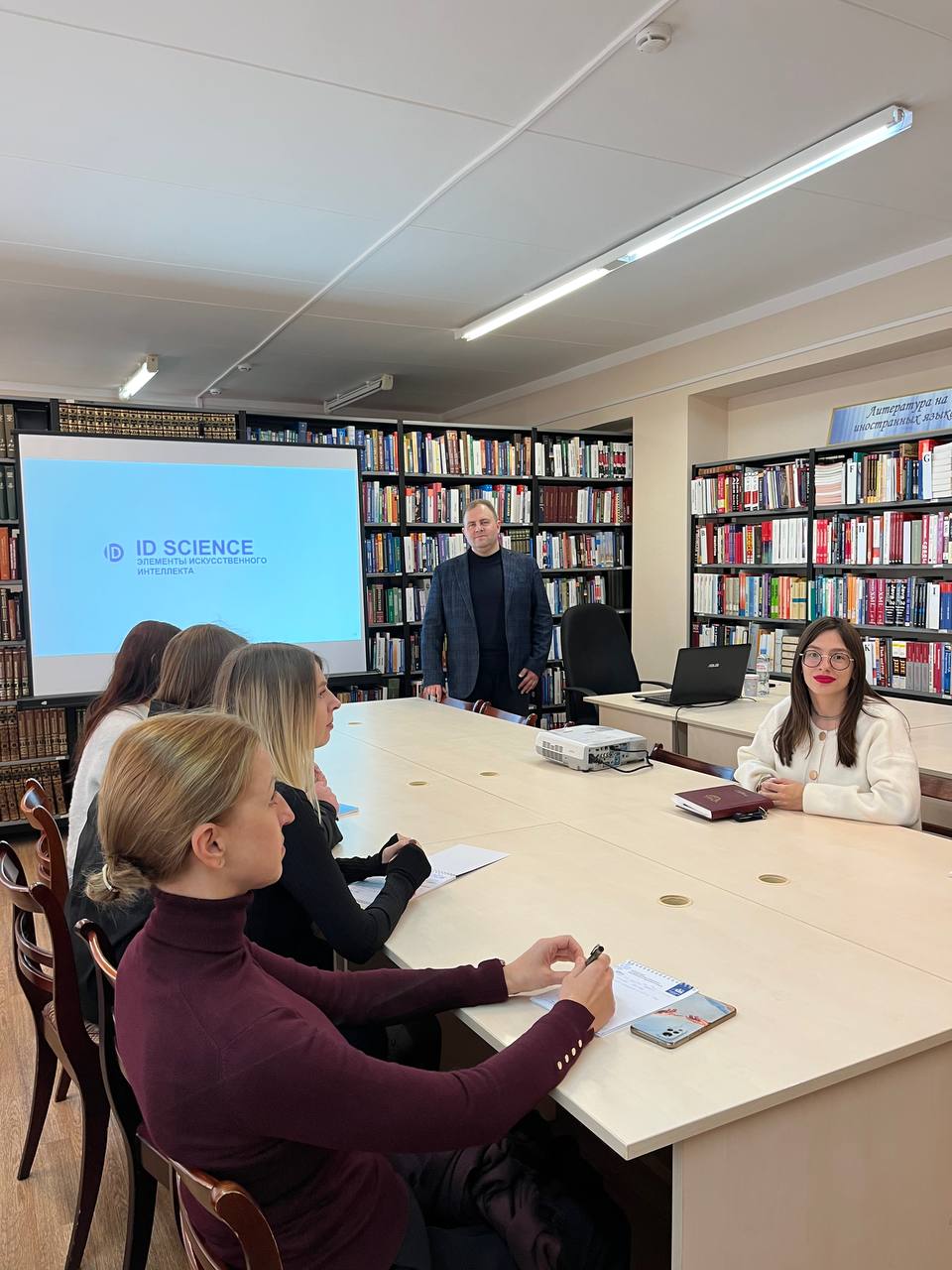 3 октября в читальном зале библиотеки состоялась встреча, посвященная информационно-аналитическому сервису в области наукометрии ID SCIENCE. Спикером выступал Аркадий Владимирович Халюков, генеральный директор ООО «Пульс науки».